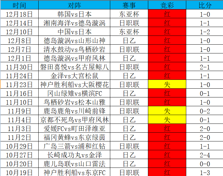 周中推举了东亚杯日韩大战,东道主韩国面对派出“国奥选拔队”的日本全场牢牢控制主动权,依靠上半场的进球最终以1-0获胜,收获东亚杯3连冠,岗田武史的竞彩建议和指数方向也双双收红,12月份获得了12中8走3的成绩,10月中旬复出后的日系竞彩建议总战绩则是19中16,作为12月份最后一场日系推举,希望持续红单走势!