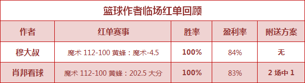 【篮球临场红单回顾】