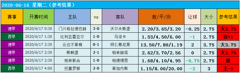 上期大数据推荐中,表现非常不错,高概率结果仅错一场!上期建议中,欧指表现非常不错,偏向全部正确且都打出来了,非常舒服!比较遗憾的是德甲拜仁这场比赛,拜仁在客场以1球小胜对手,没能打出高概率结果大3.75,没能全部完成大满贯!今天的比赛非常多,而且万众期待的英超也回归了,笔者也从中给挑选了出来,数据方面也比较有意思,偏向都是比较明显的,至于要挑选哪个作为自己的最终参考就看各位老铁的喜好了!另外,玩竞彩的老铁就关注欧指和亚指的数据即可!