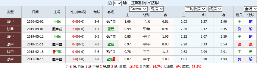 根据捷报比分提供的数据,各机构最早开出的是主队让平半高奖金的让步,数据开出以来,主队奖金回落的趋势较为明显,对主胜的信心有所增强。图卢兹当前的客场表现并不稳定,此前3轮客场比赛下来,他们的后防失球数多达6粒,防守能力很难让人放心。而亚眠的主场优势也不能忽视,前4轮主场,他们只是失利1场,可见战斗力所在,本场有争取主动的资本。结合捷报比分提供的数据和上述分析,本场比赛亚眠有望在主场继续拿分。