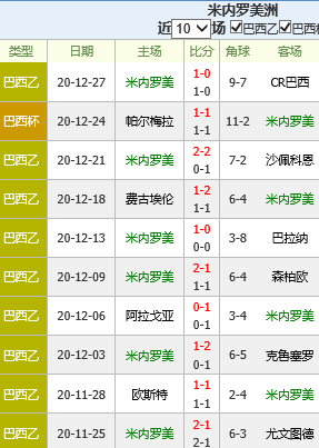 2、在本届巴西杯上,米内罗美洲也有着出色的发挥,此前2轮比赛,他们先后淘汰了科林蒂安和巴西国际两支劲旅,本次得以和帕尔梅拉斯会师半决赛。