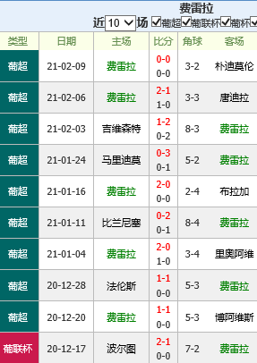 2、和主队相比,费雷拉在实力上并没有优势可言,此前10次与里斯本竞技交锋,他们全部落败。