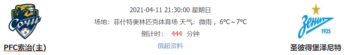 北京时间4月11日21点30分,俄罗斯超级联赛的一场焦点比赛,索契将在主场迎战圣彼得堡泽尼特。圣彼得堡泽尼特连续胜利,能否继续得手?