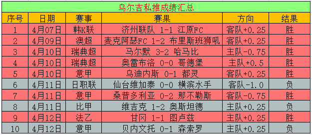 乌尔吉总结:昨天公推德甲成功获胜,私推一胜一负,今天赛事质量不错,乌尔吉会继续努力,争取全胜。