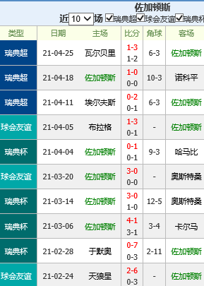 2、在两队之前10次的交锋当中,佐加顿斯5胜1平4负,稍处上风,主场方面,近4次主场对阵马尔默,他们3胜1平,优势则较为突出。