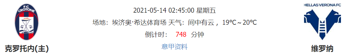 北京时间5月14日02点45分,意大利甲级联赛的一场焦点比赛,克罗托内将在主场迎战维罗纳。两支球队都是没有太多追求,到底谁更进取?