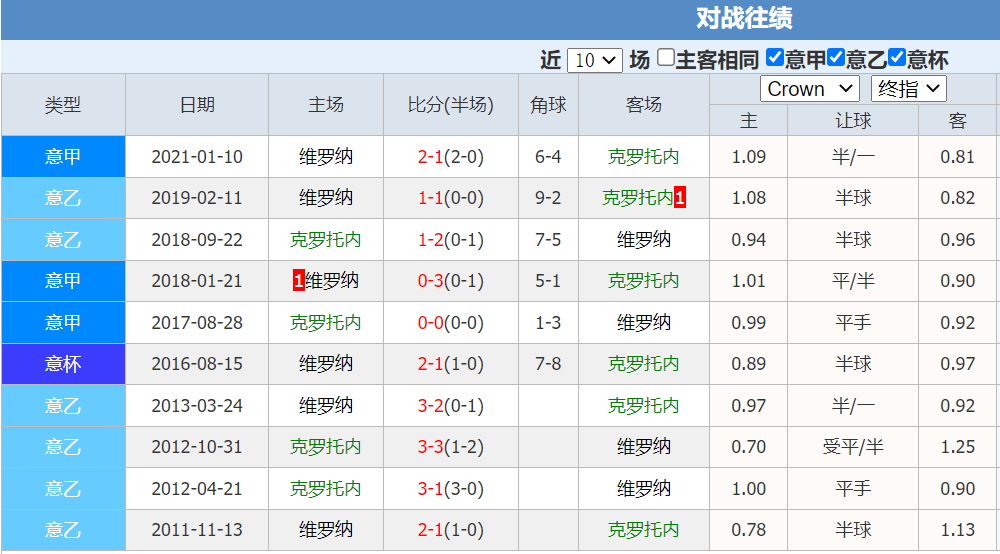 克罗托内是这个赛季的升班马,球队目前在意甲联赛积分榜是20名。克罗托内已经是提前降级了,所以说对于球队来说,下面的比赛是没有太多动力的。而且克罗托内前面的比赛,一直开展的就是很不理想。最近的10场比赛,球队是打入了18球丢掉了28球,这支球队的防守端,有很大的一个问题。当然这场比赛,球队心态轻松。