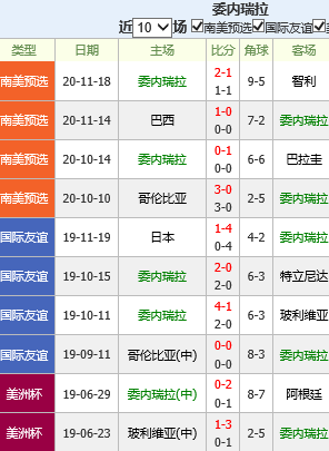 1、和主队一样,委内瑞拉队在本届世预赛上的表现也很难让人满意,特别是他们的客场,目前2客场比赛下来,他们全部失利,两场比赛皆遭对手零封,而己方后防失球数却多达4粒。