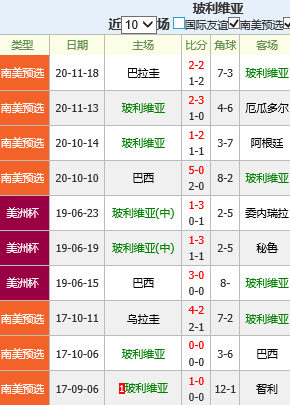 2、两队过往有过多次交锋记录,近10次的对垒中,委内瑞拉队拿到了6胜2平2负的战绩,处于上风,不过也有主客场之分,近2次作客玻利维亚,他们全部失利。