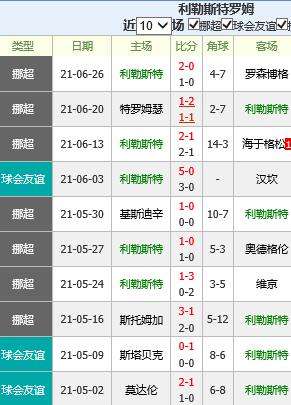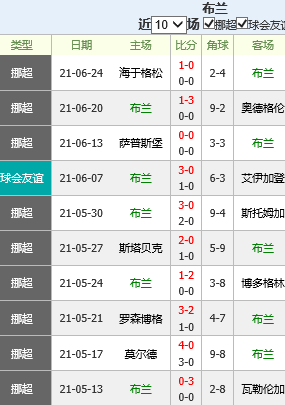 2、此前10次对阵利勒斯特罗姆,布兰的战绩是4胜2平4负,可见两队的实力较为接近。