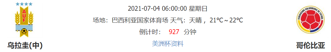 北京时间7月04日06点00分,美洲杯的一场焦点比赛,乌拉圭在中立场迎战哥伦比亚。主队势头大好,能否拿到晋级资格?