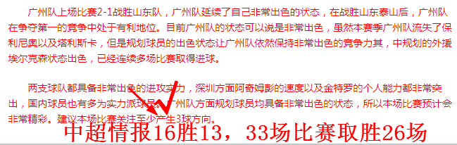 昨天给出的中超情报继续打出精彩状态,4场比赛3场比赛准确命中,豪取16胜13佳绩。