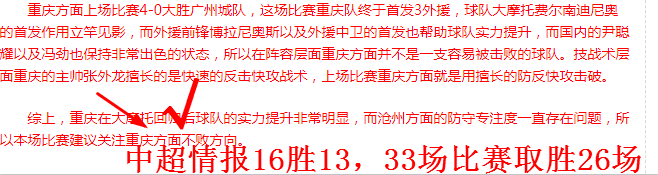 近期中超情报打出极为出色的质量,近16胜13,33场比赛取胜26场。