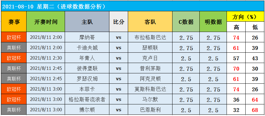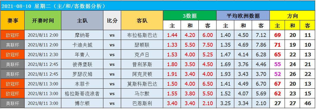 以下是今日8场比赛的以上几项数据分析,以及最终的参考方向!