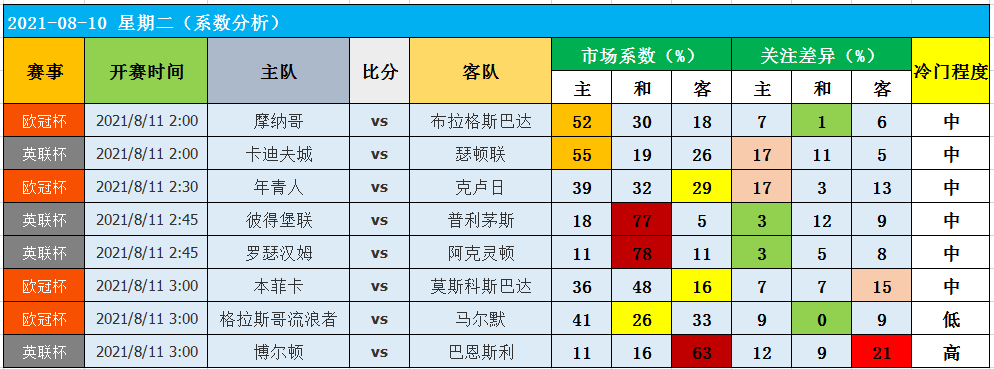 注:市场数据与关注差异均有出现深色标记的选项为最大概率出现冷门!