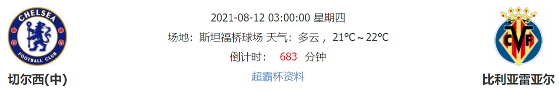 北京时间8月12日03点00分,欧洲超级杯的一场焦点比赛,切尔西在主场迎战比利亚雷亚尔。切尔西显然是实力更好,本场能否把握机会?