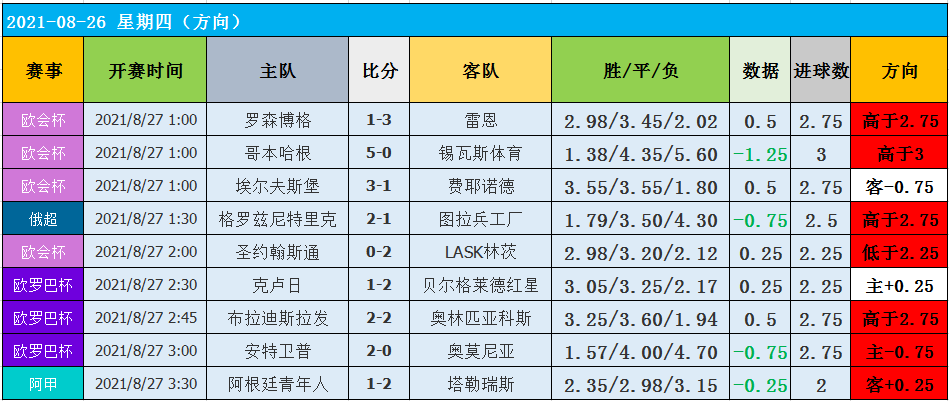 有只关注组合的老铁可以只关注欧洲数据和亚洲数据的数据即可,因为在以往的文章中,欧洲数据和亚洲数据的方向方向跑出的情况是非常高的,而鉴于数值的问题,这就需要各位老铁自己选择了!
