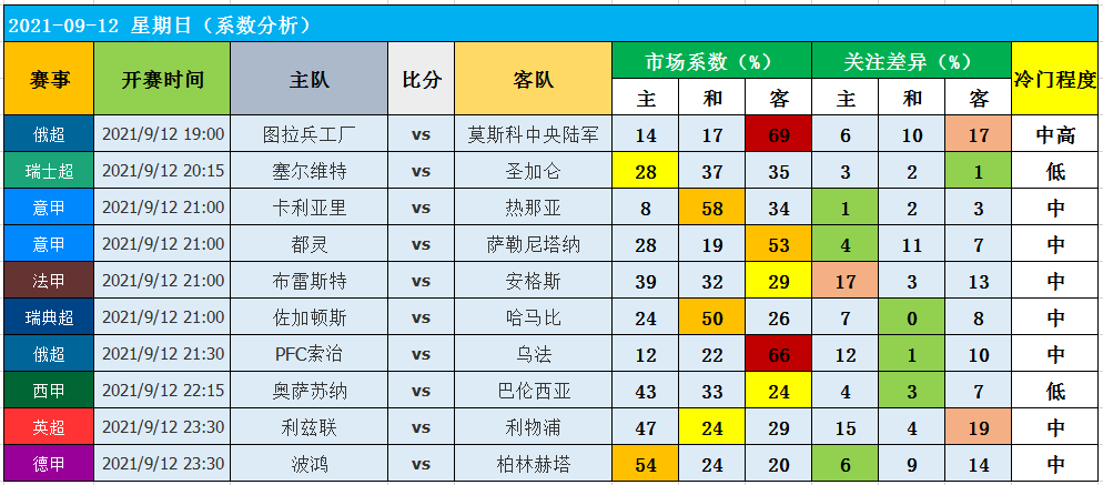注:市场数据与关注差异均有出现深色标记的选项为最大概率出现冷门!