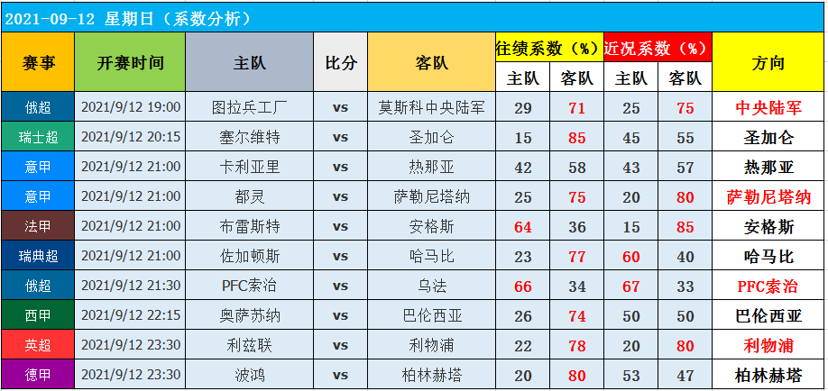 通过对两队的历史成绩、交手成绩及升降级等得出往绩系数;而近况系数则是通过近期(10场左右)成绩分析通过公式计算得出近况系数。