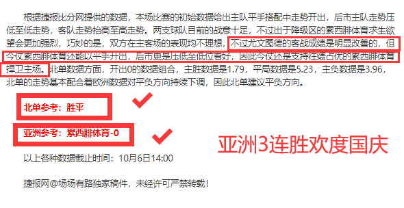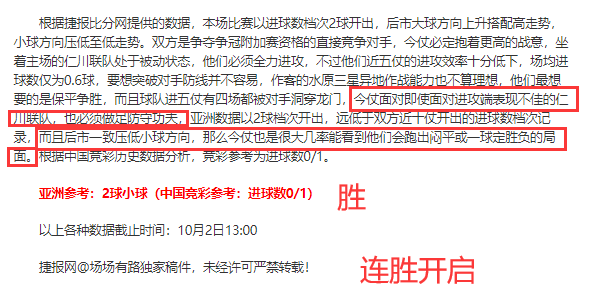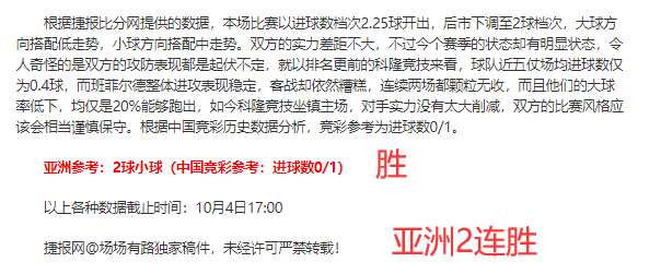 昨天继续亚洲方向和北单方向胜利,亚洲3连胜和整体亚洲有效成绩6胜5,表示出场场有路状态十分良好。高标准的成绩单印证场场有路分析思路与状态得到极致配合,相辅相成的作用力成功率徒然提升。