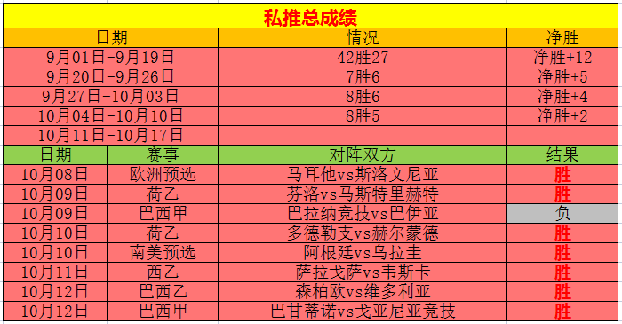 昨天私推的2场,全部拿下,巴西甲和巴西乙,十分顺利,近期5连胜,9月份表现出色,10月份继续加油。乌尔吉每天分析的赛事都是经过长时间追踪,花费了大量时间观察,结合大数据变化以及市场冷热情况,最终有把握的赛事,才会分享给大家,追求质量,加油。
