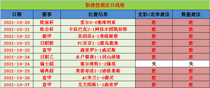 比赛回顾:笔者近10胜9,状态稳定。昨日精选意甲赛事,尤文图斯vs森索罗,两队近10次交手尤文图斯优势肉眼可见,主队尤文图斯无论欧战还是联赛,近期状态极佳,初始数据给出一球,这一球相对来说太浅了,虽然数据调整到一球/球半,这样的变化无非就是给尤文加热,展示出胜的信心,就因为初始数据一球笔者就不看好尤文图斯大胜。比赛进行第44分钟,主队尤文图斯先丢一球,上半场0-1落后森索罗,下半场第76分钟主队尤文图斯扳回一球,比赛最后时刻第90分钟,森索罗小将球员洛佩兹挑射进球,最终比分尤文图斯1-2不敌森索罗,符合笔者预期。今日精选意甲赛事,萨普斯堡vs瓦勒伦加,敬请期待。