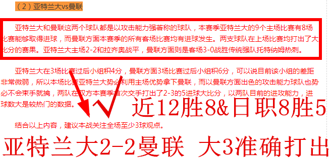 11月2日,外媒严选汇总发挥惊艳,给出的8场欧冠严选观点准确打出5个,个人建议层面准确给出亚特兰大2-2曼联全场大3观点,近12场胜8。