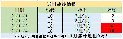 大数据栏目:本栏目将当天的赛事列出经由大数据分析得出的任何高概率选项供网友参考(期间若连续2期总胜率低于50%,将免费1期补偿)。现时大数据分析逐渐融入我们的生活当中,任何一个动作都能参照历史数据得出下一个行为是什么。足球作为一项竞技体育赛事,自然也离不开大数据的分析,在可供查找的数据中我们可以经过特殊的算法得出赛事的某些选项高频概率,而本栏目正是因此而创建。
