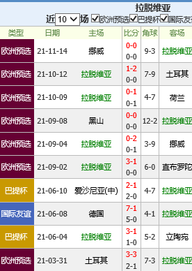 2、虽然实力不强,但拉脱维亚队的客场表现却并非一无是处,此前3轮欧洲预选赛客战,他们先后逼平了土耳其队、黑山队和挪威队。