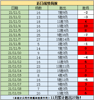 大数据栏目:本栏目将当天的赛事列出经由大数据分析得出的任何高概率选项供网友参考(期间若连续2期总胜率低于50%,将免费1期补偿)。现时大数据分析逐渐融入我们的生活当中,任何一个动作都能参照历史数据得出下一个行为是什么。足球作为一项竞技体育赛事,自然也离不开大数据的分析,在可供查找的数据中我们可以经过特殊的算法得出赛事的某些选项高频概率,而本栏目正是因此而创建。