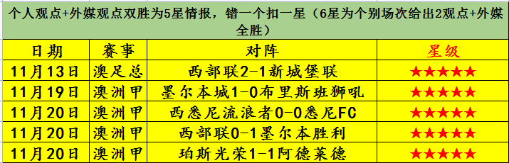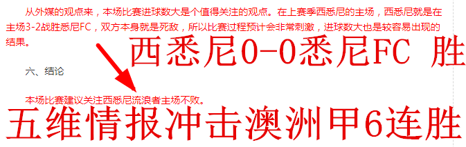 昨天灵通哥送出的3场澳洲甲情报再次打出全胜的辉煌战绩,目前澳洲甲开赛的4场比赛灵通哥保持全胜纪录,再加上赛季前的澳足总杯的胜利,目前澳系的五维情报5连胜!