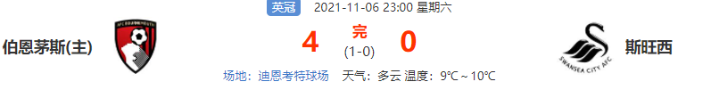 通过以上联赛成绩对比,整体成绩是伯恩茅斯占优,主客成绩依然是伯恩茅斯占优。