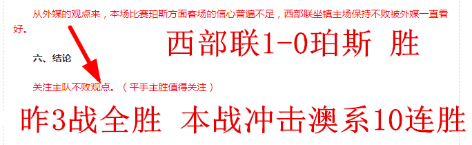 昨天灵通哥给出的3场足球情报再次打出辉煌战绩,昨3战全胜!!尤其是澳洲甲的赛事,西部联1-0珀斯,该场比赛灵通哥准确给出五维情报观点,目前澳系比赛已经达成9连胜目标,本战向10连胜目标发起冲击!