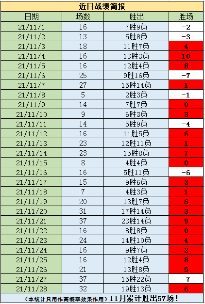 大数据栏目:本栏目将当天的赛事列出经由大数据分析得出的任何高概率选项供网友参考(期间若连续2期总胜率低于50%,将免费1期补偿)。现时大数据分析逐渐融入我们的生活当中,任何一个动作都能参照历史数据得出下一个行为是什么。足球作为一项竞技体育赛事,自然也离不开大数据的分析,在可供查找的数据中我们可以经过特殊的算法得出赛事的某些选项高频概率,而本栏目正是因此而创建。