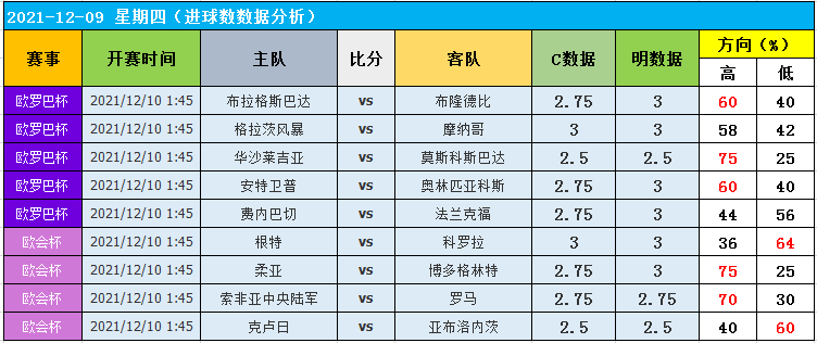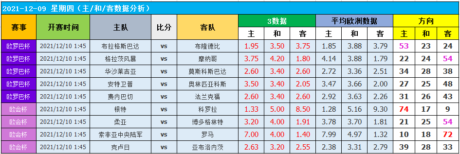 以下是今日9场比赛的以上几项数据分析,以及最终的参考方向!