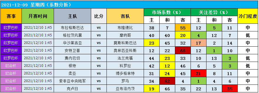 注:市场数据与关注差异均有出现深色标记的选项为最大概率出现冷门!