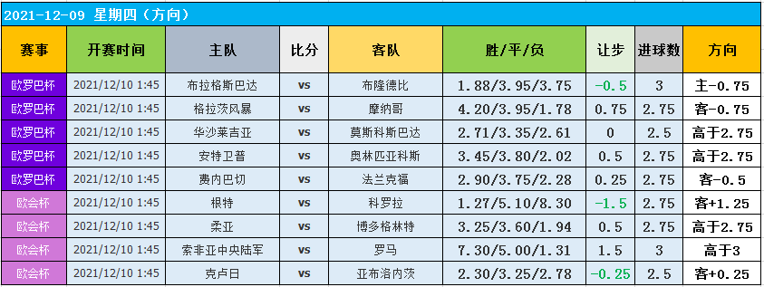 我们本栏目的数值数据由国外欧洲数据及平均欧洲数据一起构成对比,再根据中国竞彩历史类似数据分析结合,最后做最终的方向方向。