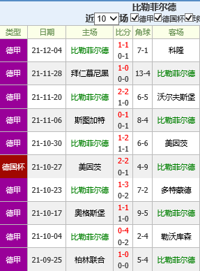 2、两队过往有过多次交锋记录,在近期10场的交锋中,比勒费尔德的战绩是1胜4平5负,近5次作客柏林赫塔,他们更是2平3负一胜难求,在实力上完全处于下风。