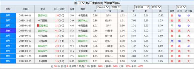北京时间12月13日03:45,国际米兰对阵卡利亚里,国际米兰上场联赛面对罗马,以3-0的比分战胜对手,而卡利亚里上场联赛以1-1的比分与都灵战平。本场对战,国际米兰能否大胜拿下?