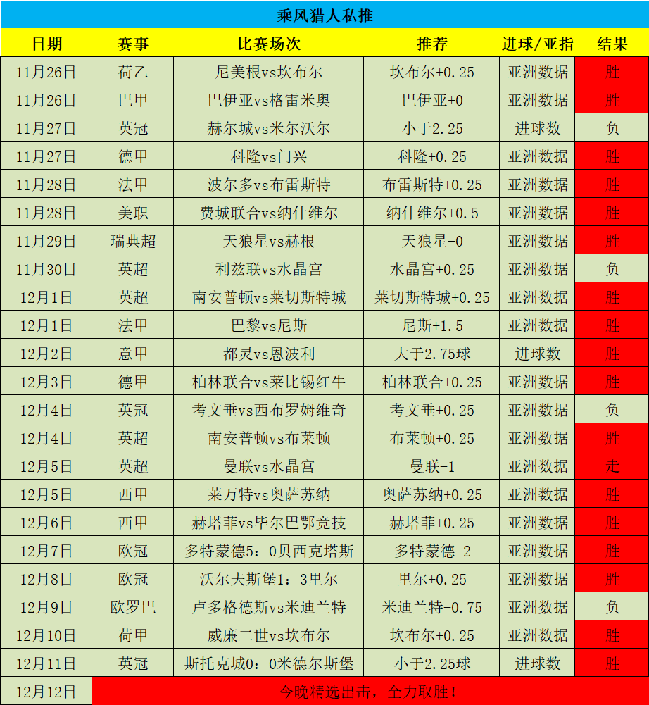 奥利给!私推英冠进球数,双方0-0闷平,进球数小完美全胜,私推近期出色13胜11+21胜17!成功再大捷,状态非常不错,有信心持续保持!周末来了继续吃肉,兄弟们抓紧一起冲!
