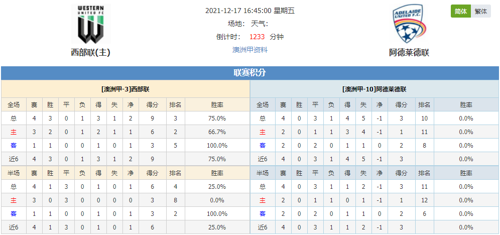 北京时间12月17日16:45,澳洲甲联赛第5轮比赛,西部联坐镇主场迎战阿德莱德联,双方历史交战4次,各取胜一次,势均力敌,此战究竟谁更胜一筹?