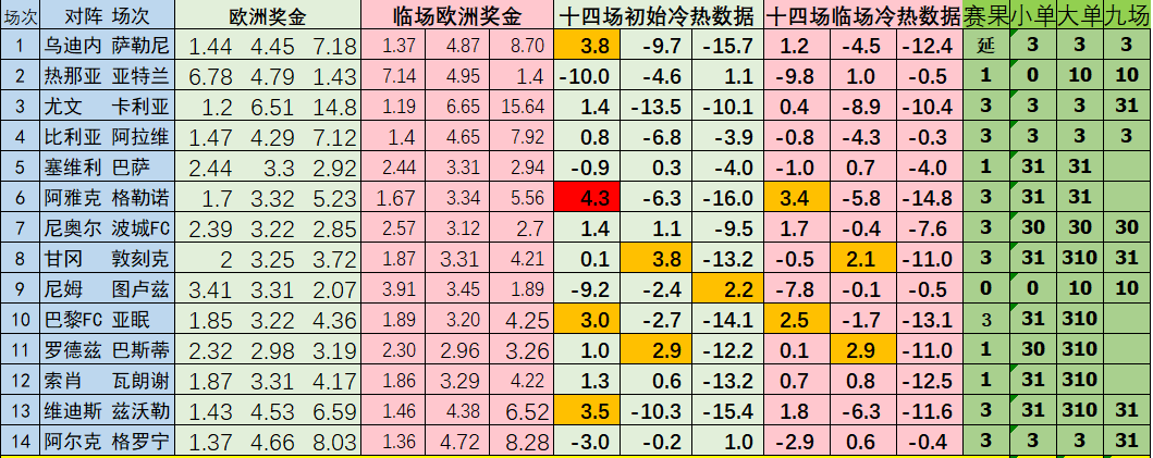 以下解锁内容包含159期胜负彩必发冷热数据+方案参考+偏离系数