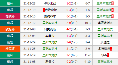 而在上一场的国内杯赛上,里斯本竞技在少打1人的情况下依然客场2-1击败了来自葡甲的卡沙比亚,科阿特斯和萨拉维亚分别在上、下半场取得进球,帮助球队斩获各项赛事的四连胜。而在本赛季多线作赛的情况下,里斯本竞技在最近的10场各项赛事拿下了9胜1负的出色表现,而且期间场均进球数达到2.2粒,而且当中包括5场对对手完成零封,攻防两端的状态极具统治力。