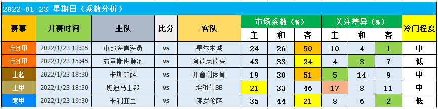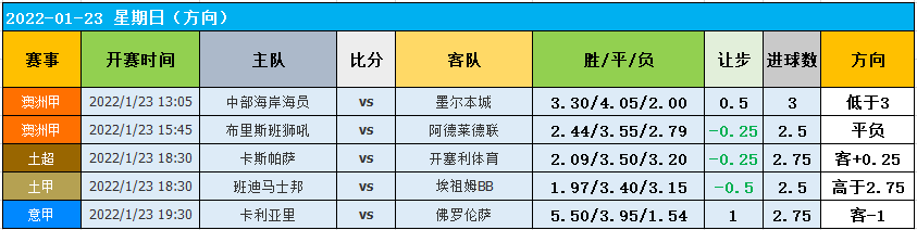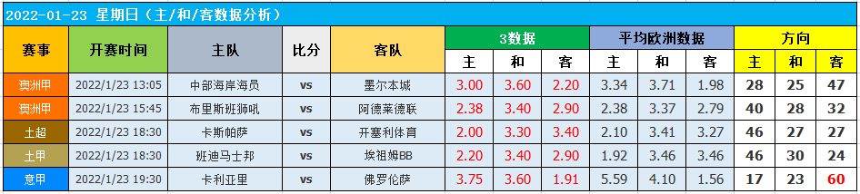 上期数据表现一般,晚场的比赛有5场顺利打出!上期数据中,晚场的英系表现不错,5场有3场顺利打出,而表现最佳的是西乙,继续完美拿下数据,非常的漂亮!而德甲的表现则是差强人意,霍芬海姆在关键时刻送对手乌龙大礼助对手拿下三分,真的是非常剧本了!今天的比赛较多,笔者挑选了部分早场比赛出来作为本期的参考,希望能够打出对应的高概率方向!
