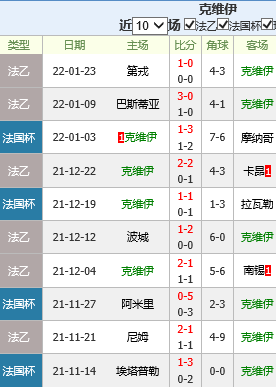北京时间01月27日02点00分,21-22法乙联赛第21轮的一场比赛,亚眠将前往客场与克维伊展开较量。克维伊近期在各项赛事中遭遇三连败,本轮主场面对亚眠,其发挥仍然不宜高估。