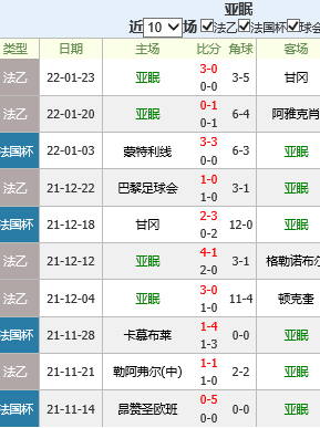 1、亚眠在法乙赛场上实力不强,本赛季他们的联赛走势也较为平庸,目前联赛21轮战罢,球队仅仅拿到5胜9平7负的成绩,以24分的成绩排名联赛第14位,其中客场只是取胜1场,战斗力低下。
