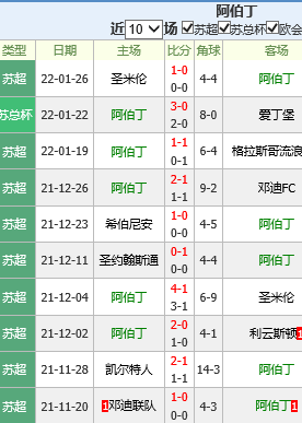 2、阿伯丁目前主要靠主场抢分,当前他们的主场仅失利3场,而其客场表现却是起伏不定,11轮客场战罢,其2胜2平7负的成绩很难让人满意。