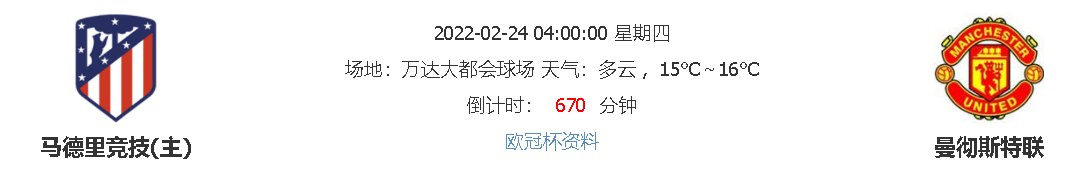 北京时间2月24日04:00,欧冠杯16强比赛第一回合赛事,马德里竞技vs曼彻斯特联,作用主场之利的马竞能否凭借主场优势一举拿下红魔,C罗这位欧冠经验丰富的老将是否还能发挥关键性作用?让我们拭目以待!