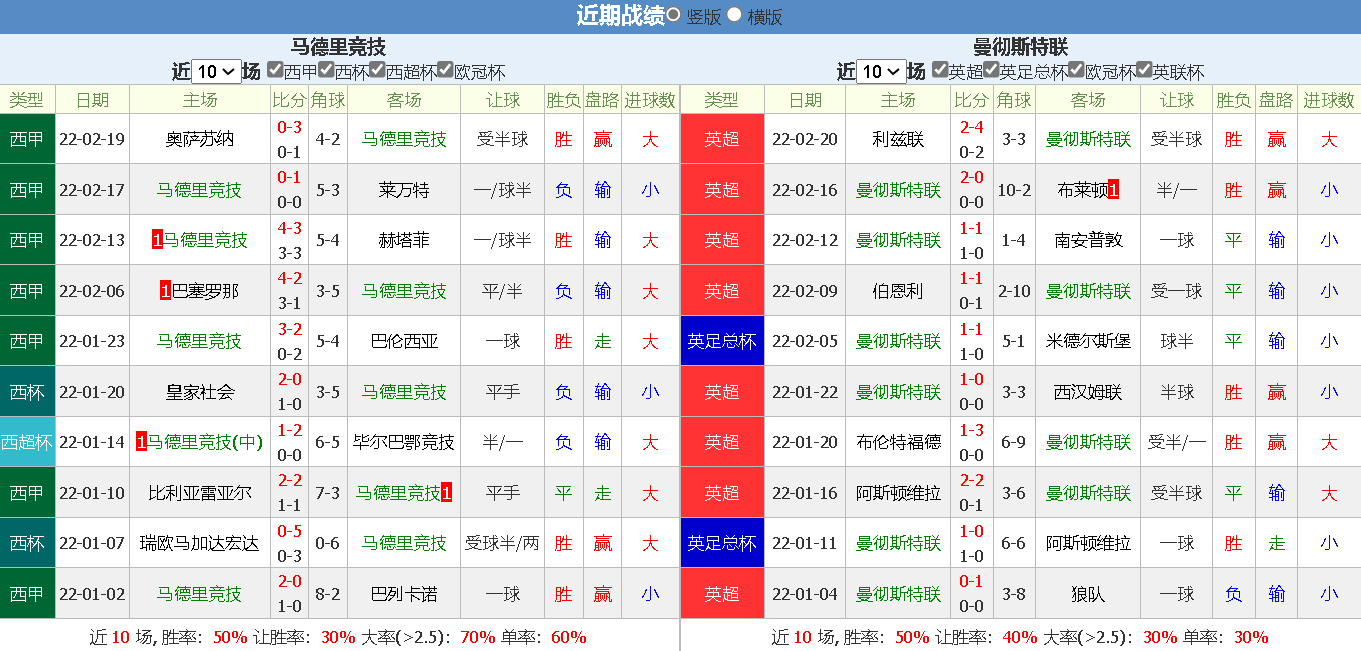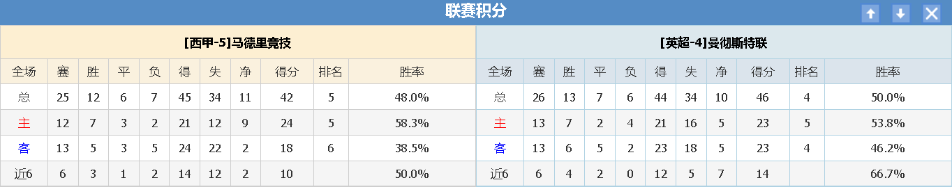 北单编号:73 马德里竞技vs曼彻斯特联