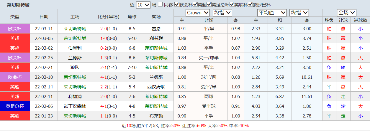 莱切斯特城本赛季整体表现不是很理想,联赛成绩排名第十二,赛事取得9胜6平10负的成绩。不过球队近期状态稍有回暖,上场联赛主场面对利兹联,球队场面上略占上风,但球队整体的进攻端表现还不尽人意,比赛上半场两队都未实现破门,直到下半场67分钟球队才轰入1球制胜球,最终以1-0的比分获胜。